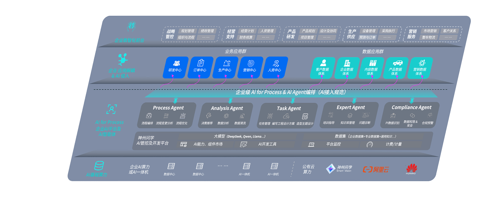 端到端的一站式AI工作空间深度融合了从企业战略规划到日常经营的全流程业务板块,,,定向解决车企内部领域多、、、、部门多、、链条长、、、、场景碎片化等难题,,支持车企快速构建以AI为核心的生产力写作体系,,,实现任务执行与AI能力的无缝集成与交互